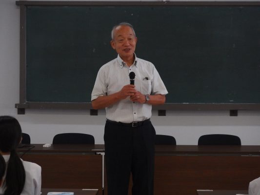 歓迎の挨拶では、須賀学長から生徒のみなさんへ「自分が知りたい、こんな知識を身に着けたいという思いを持って大学を選んでほしい」とメッセージが伝えられました。