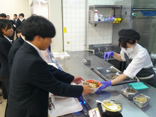 最後に、米沢中央高校出身の在学生から後輩へのアドバイスをお伝えし、お昼は食堂でランチをお楽しみいただきました。