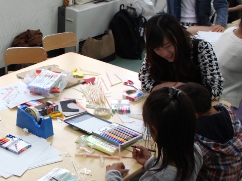 子ども学科1年生が企画・運営する実践的な体験学習です。子どもたちに対して、身近なものを利用しておもちゃを手作りする造形活動を提供します。自分たちで用意した素材を元に、真剣なまなざしで玩具を作っている子どもたちに寄り添い、一緒に楽しみながら保育者としてのスキルの向上を図っています。学生が考えた簡単に作れるおもちゃを一緒に作ってみませんか?