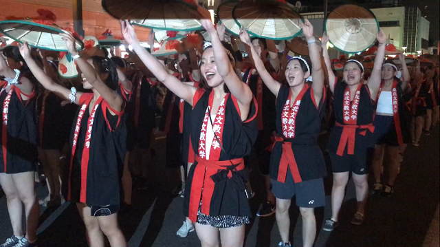 「今年も東北文教大学の学生が花笠祭りに参加させていただきました。約180人の参加者が集い、1ヶ月前から練習を重ねて本番に臨みました。本番では、沿道の方の声援を受けながら、学科学年関係なく一致団結して踊ることができました!最高の夏の思い出にすることができました。」