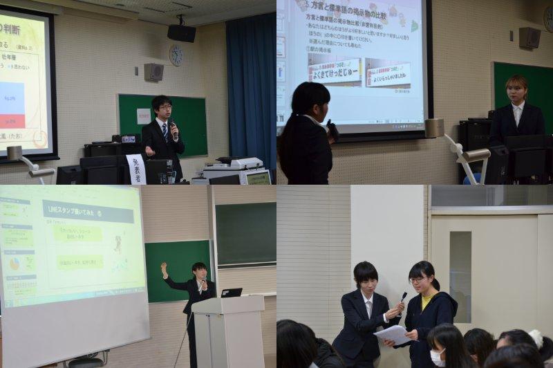 2020年2月5日(水)、総合文化学科で卒業研究発表会が行われました。情報メディアゼミ、現代文化ゼミ、異文化ゼミ、社会文化ゼミ、民俗社会ゼミ、比較文化ゼミ、言語文化ゼミ、コミュニケーションゼミの合計8つのゼミに分かれて、1年間の研究結果を学生たちが発表しました(プログラムの詳細はこちら)。