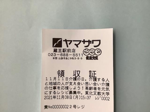 現代福祉学科では、誰にでも訪れる介護について考えたり、介護をしている人達に関心を持ってもらいたいと思い、ヤマザワ様のご協力を得てヤマザワレシートにメッセージを印字しました。印字の期間は、11月8日から14日までの1週間です。お買い物の際にはぜひレシートをご覧ください!
