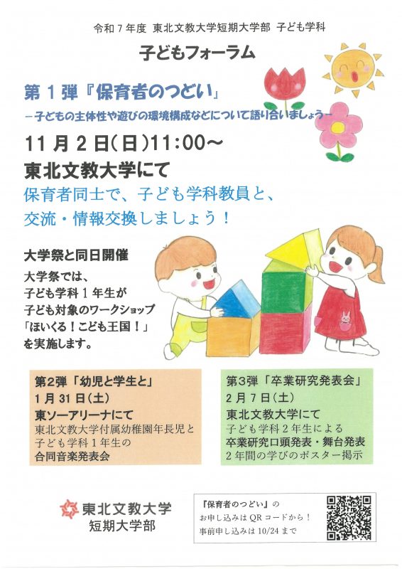 『保育者のつどい-子どもの主体性や遊びの環境構成などについて語り合いましょう-』開催について