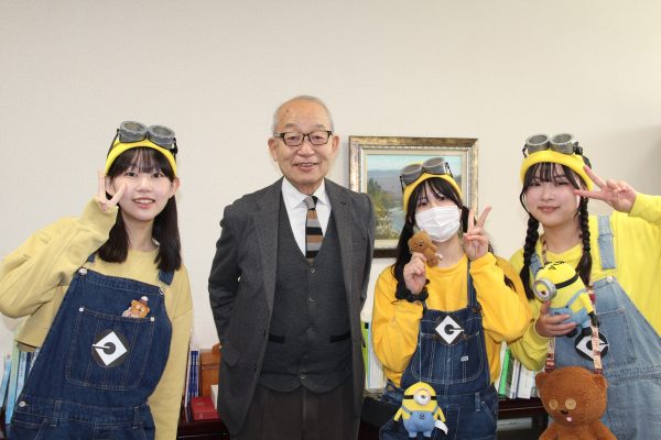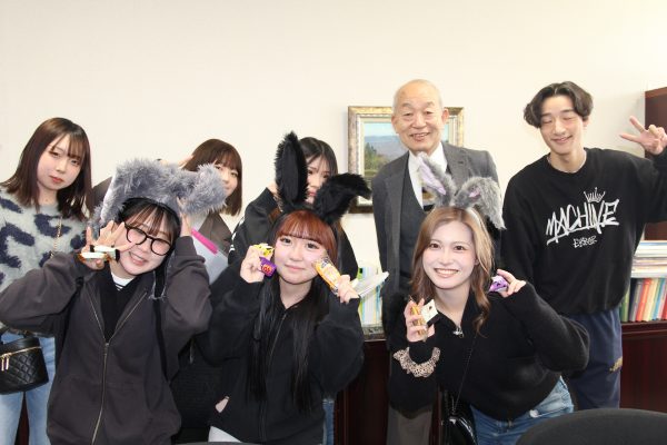 今年も学長室は、たくさんの学生たちで賑わっています。学長室はもとより、学内はハロウィン仕様に変身し、カボチャや魔女の飾りが並び、廊下には学生や教員が仮装した小悪魔、デビル、アニメのキャラクターがぞろぞろ。