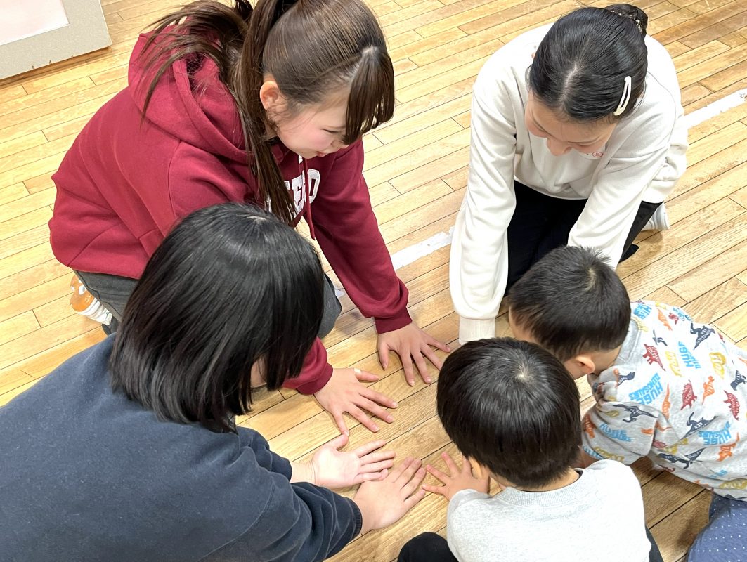 三回目で子供達も学生やその環境に少し心の余裕が生まれて、前回までは見ているだけの子が参加してくれたり、私たちも進行の仕方も少しずつ慣れていることが感じられる活動だった。初めてのわらべうたは反省や新たな気づきがあり、実習にもいい学びとして参加することができた。