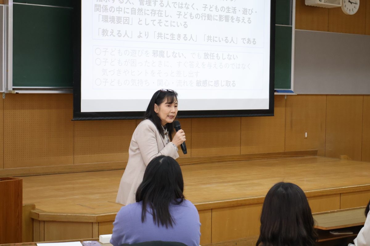 続く学科長講話では、今日の日本の保育・教育において多大な影響を残した倉橋惣三の言葉に触れながら、「環境としての保育者・大人」としてこれからも自己研鑽を続けていって欲しいといったエールが送られました。