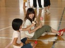 体育館において「すこやか広場」と題して行われた、けん玉や学生とのふれあいの様子です。