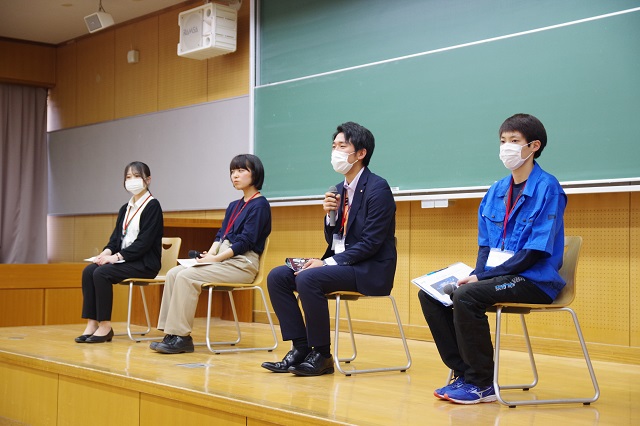 4名の先輩方には、「日々の業務内容や現場での体験談」「仕事のやりがい」などをお話し頂き、学生たちも真剣に聴講する様子が見られました。