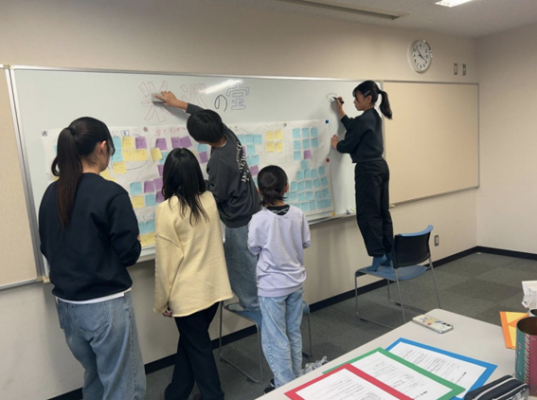 当日はクマ対策で室内実施に変更し、かつ4時間という長い時間でしたが、地域の「宝」探しの時間は大いに盛り上がりました。また「10年後の米沢」を考える時間では、小学生から斬新で実行できそうなアイデアがたくさん飛び出していました。今後は今回のデータを科学的に分析し、地域を選ばず誰でも実施できる内容にしていく予定です。
