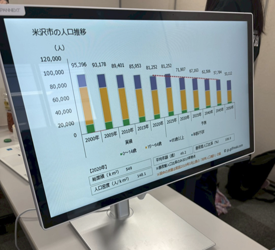 当日はクマ対策で室内実施に変更し、かつ4時間という長い時間でしたが、地域の「宝」探しの時間は大いに盛り上がりました。また「10年後の米沢」を考える時間では、小学生から斬新で実行できそうなアイデアがたくさん飛び出していました。今後は今回のデータを科学的に分析し、地域を選ばず誰でも実施できる内容にしていく予定です。