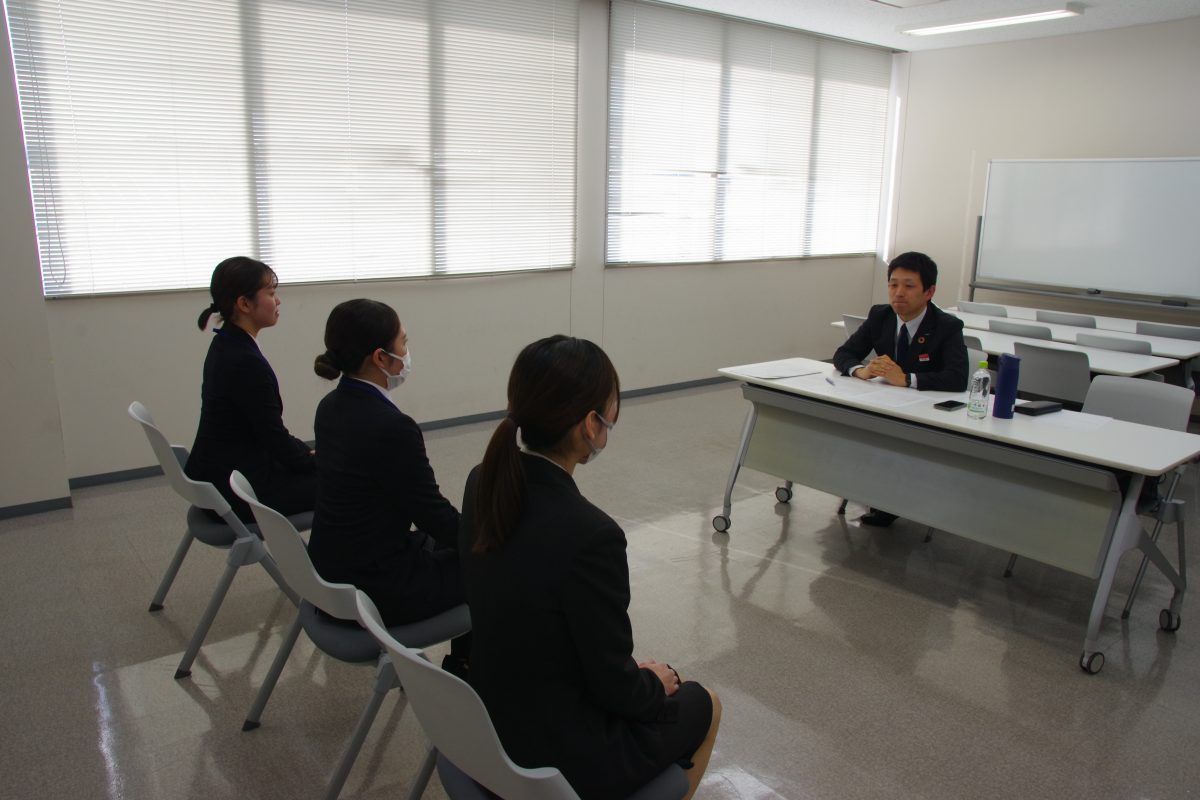 模擬面接会では、学生は緊張感のある雰囲気の中にも前向きに取り組み、真剣に本番さながらの面接に臨んでいました。面接後には、自己PRの構成方法や面接で意識すべきポイントについて、実例を交えた具体的なアドバイスをいただき、学生にとって大変有意義で学びの多い時間となりました。
