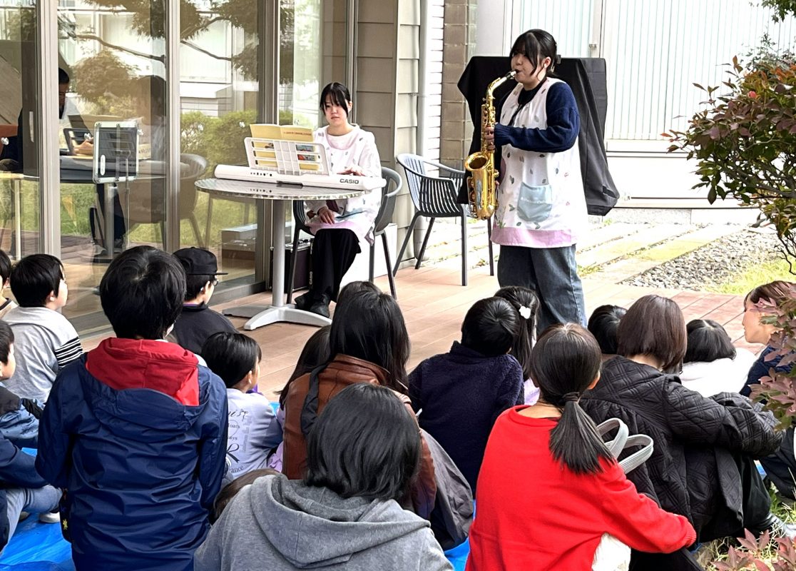 2 サックスとキーボードで恐竜の曲を演奏(中庭)